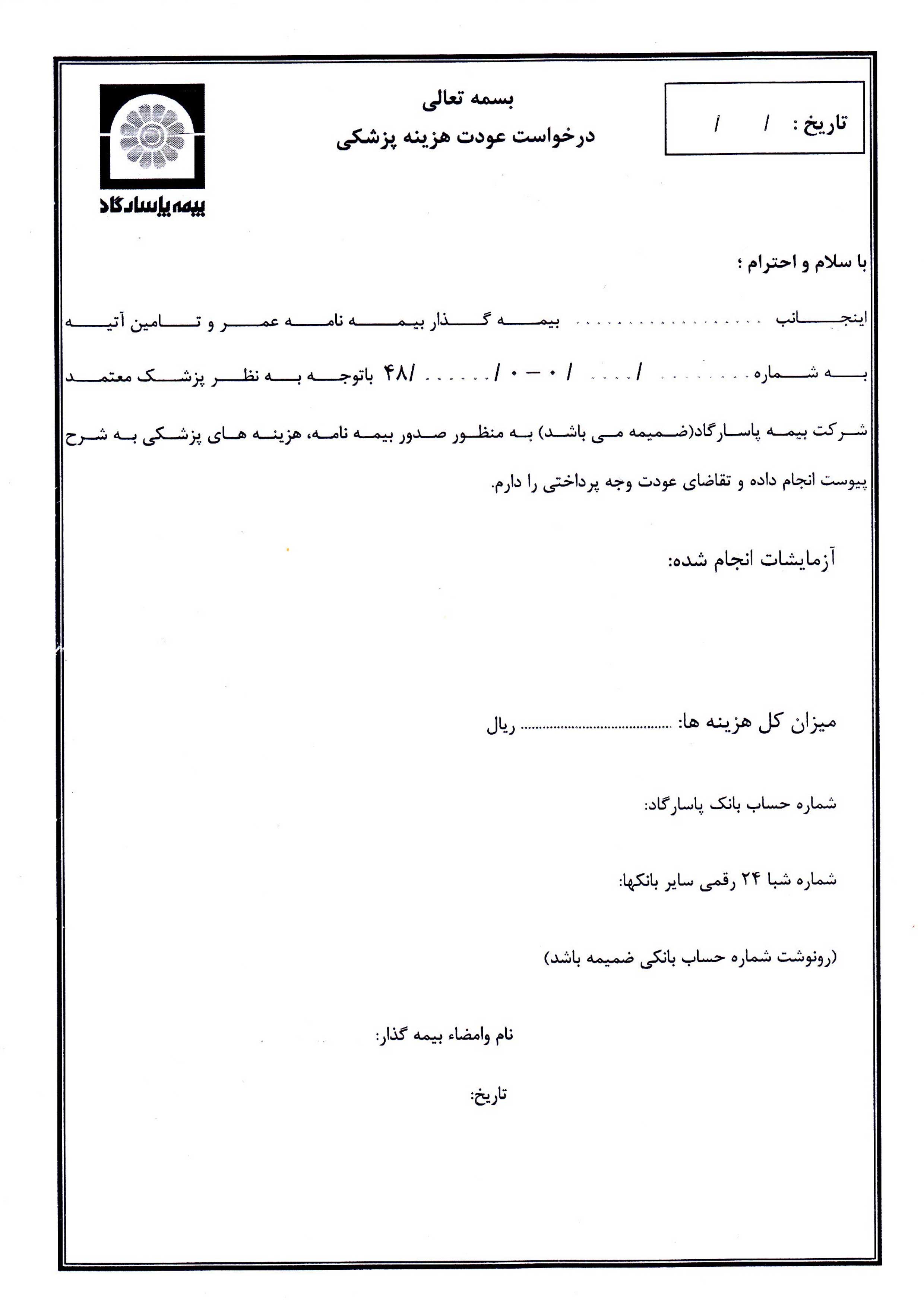 الف ) تکمیل درخواست استرداد هزینه پزشکی توسط بیمه گذار