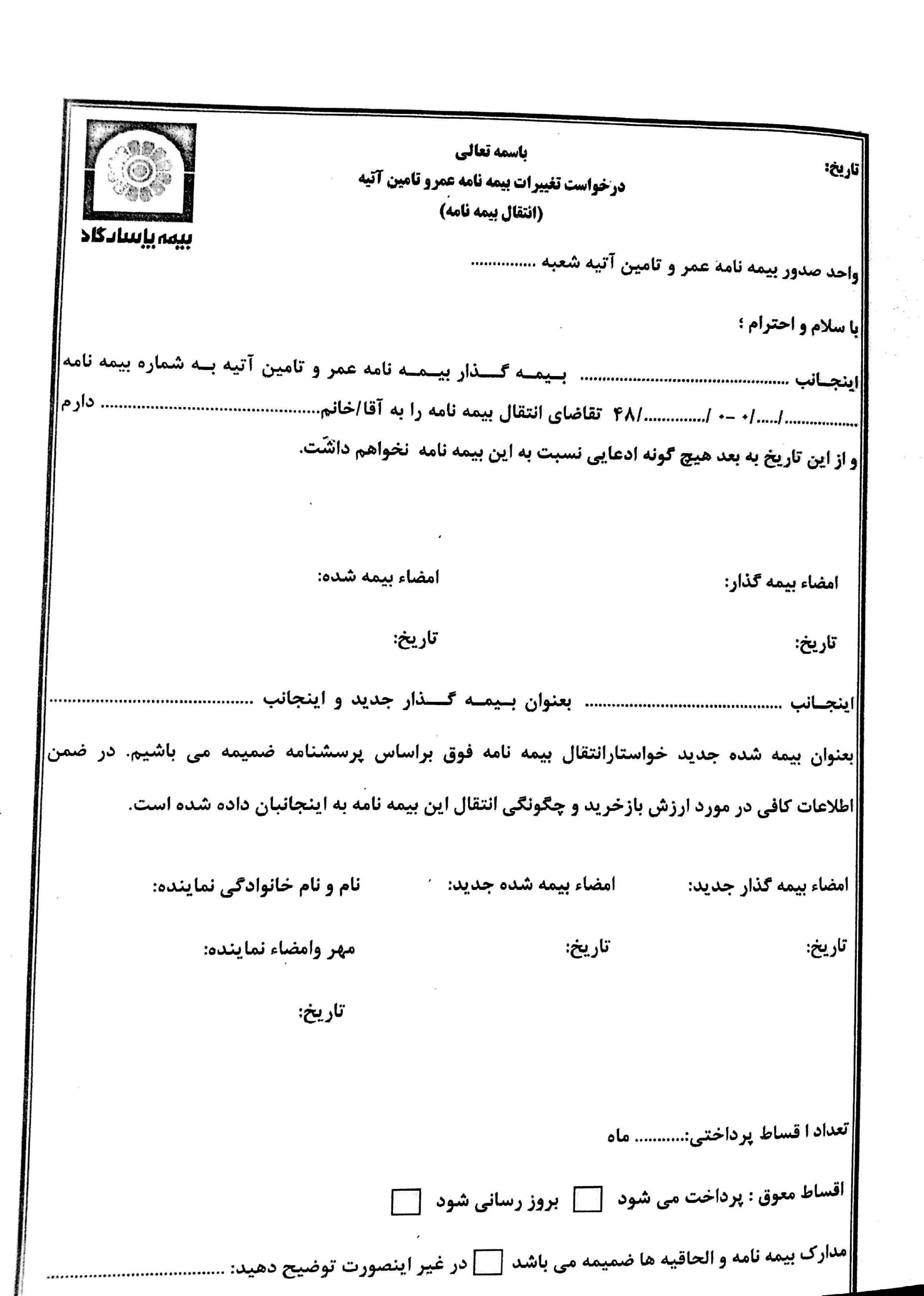 درخواست تغییر بیمه گذار بیمه نامه عمر