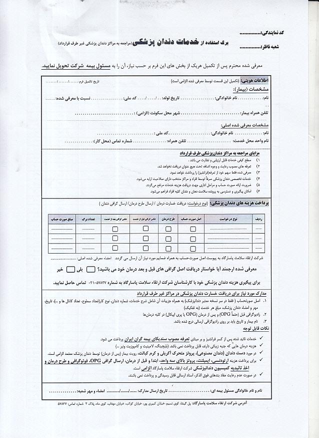 الف ) تکمیل فرم دندانپزشکی غیر طرف قرارداد توسط نماینده
