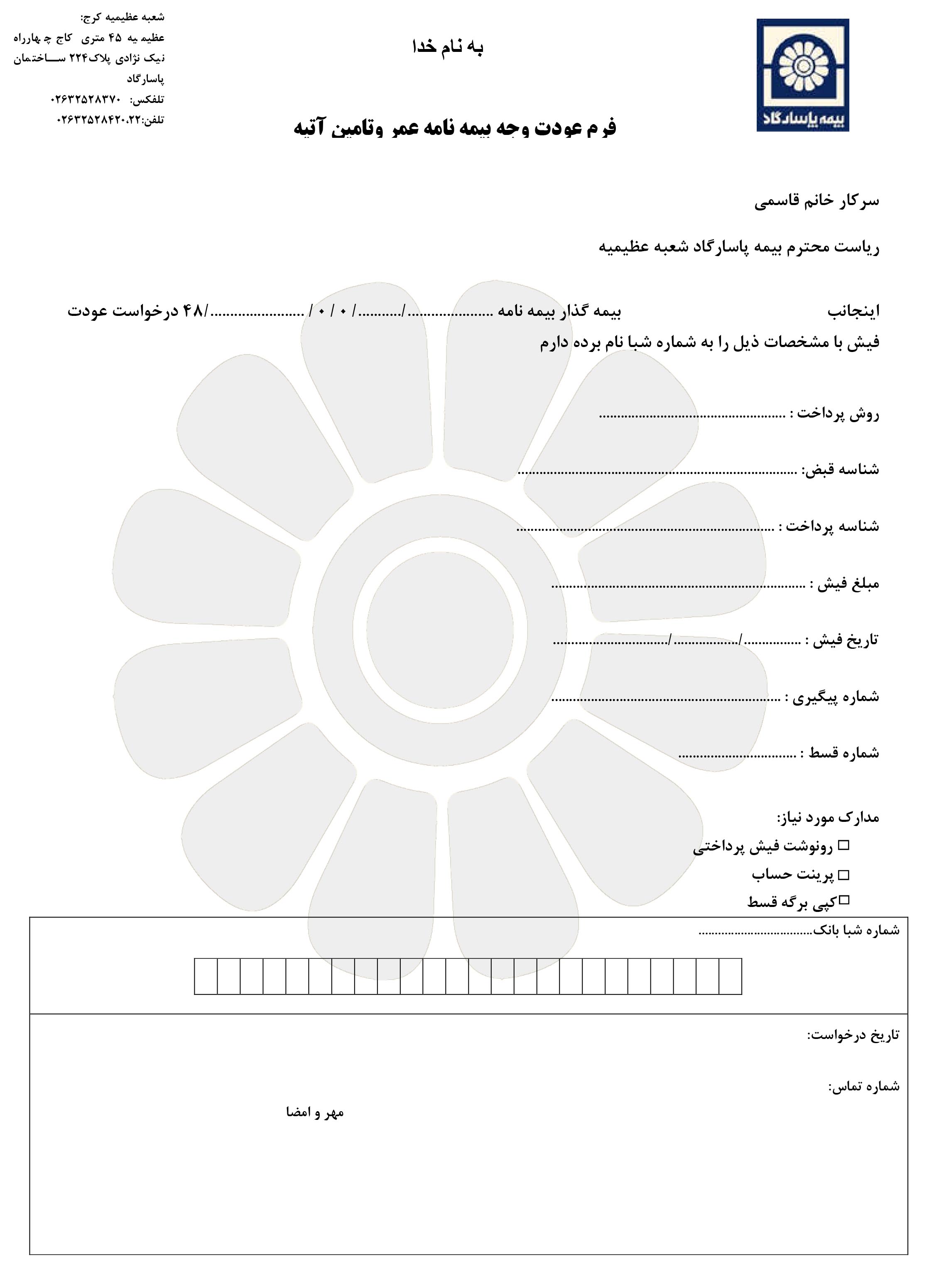 ج) شماره حساب بانک پاسارگاد یا کپی شبای سایر بانکها به نام بیمه گذار