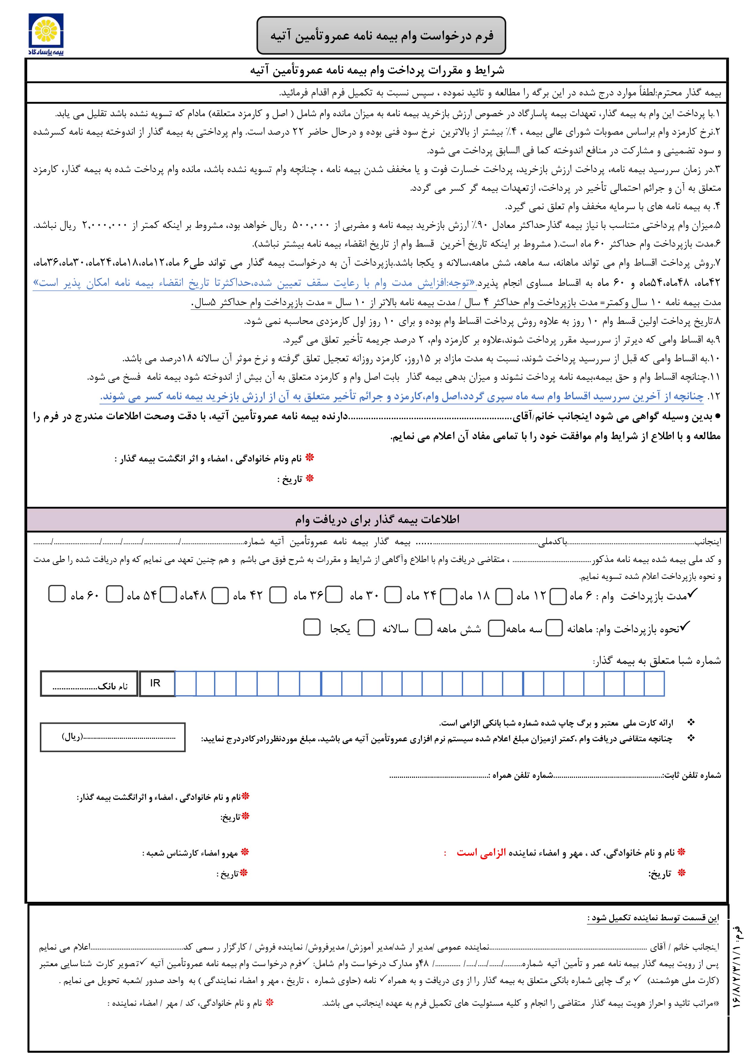 درخواست وام بیمه نامه عمر و تامین آتیه