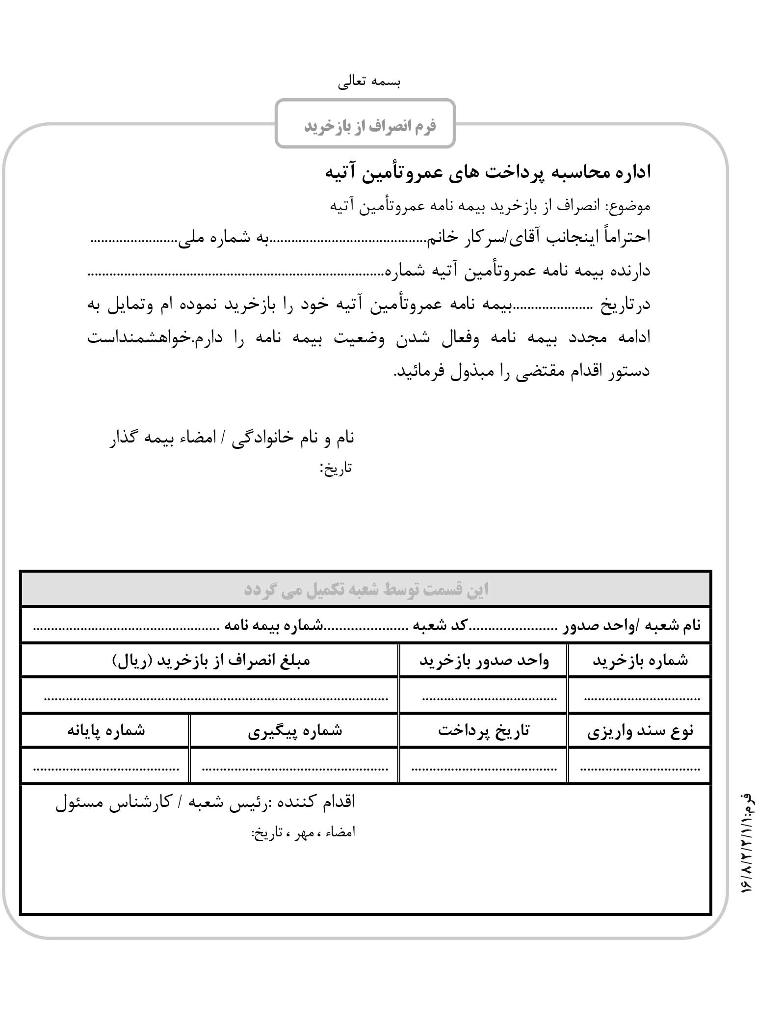 الف ) تکمیل فرم انصراف از بازخریدی توسط بیمه گذار