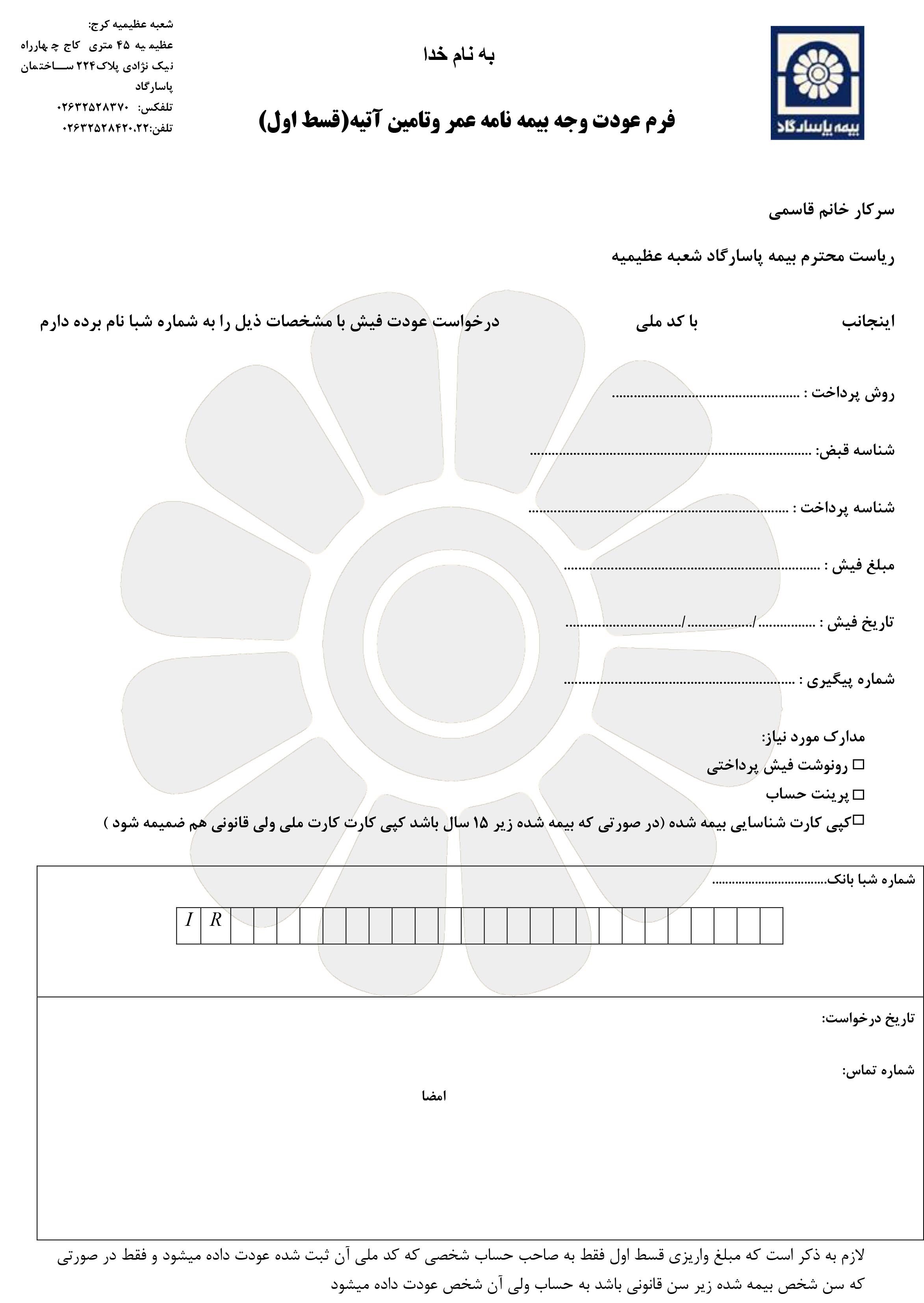درخواست عودت وجه قسط اول بیمه نامه عمر و تامین آتیه